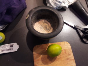 Press limesaften ned i morteren.