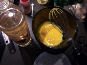 Pisk olien i æggeblommen, lidt af gang i små dråber.