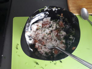 Fjern hinder fra torskerognen, – jeg brugte en ske til “grave” rognen ud med.