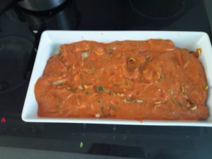 En anden mulighed er at bruge creme fraiche 38% i stedet for tomatpure og piske fløde – NEJ man kan ikke bruge 18% – den skiller og sovsen får et meget “uheldigt” udseende.